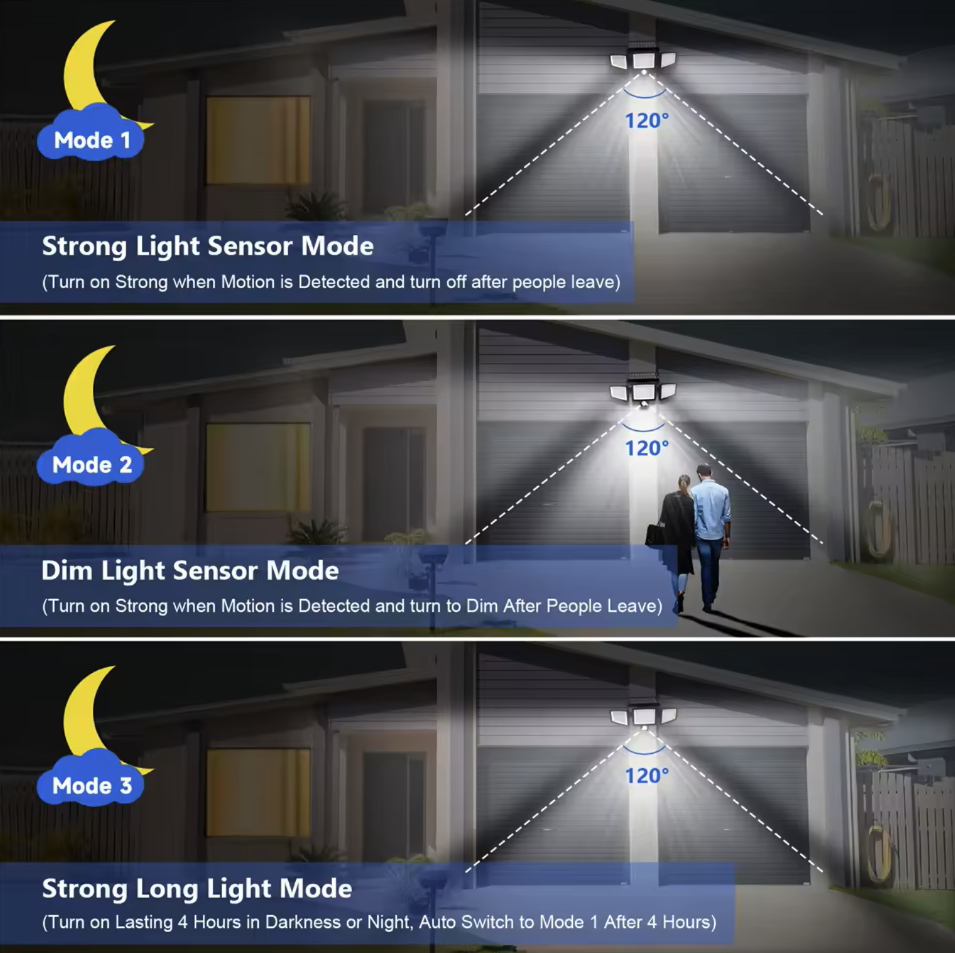 1️⃣ Strong Light Sensor Mode – turns on bright light when motion is detected.